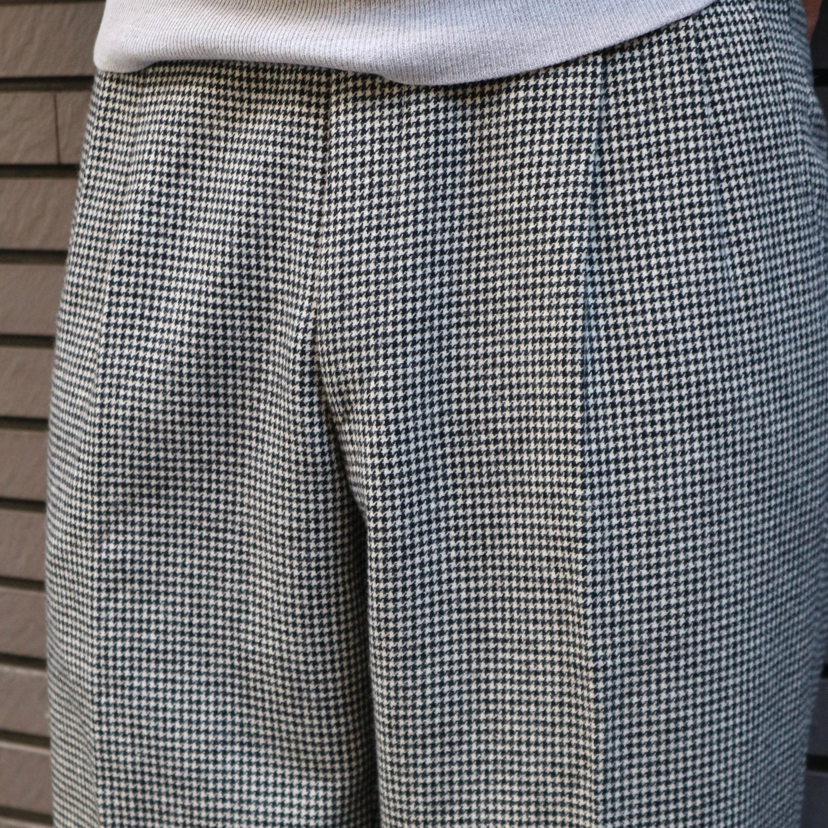 千鳥格子のウールスラックス