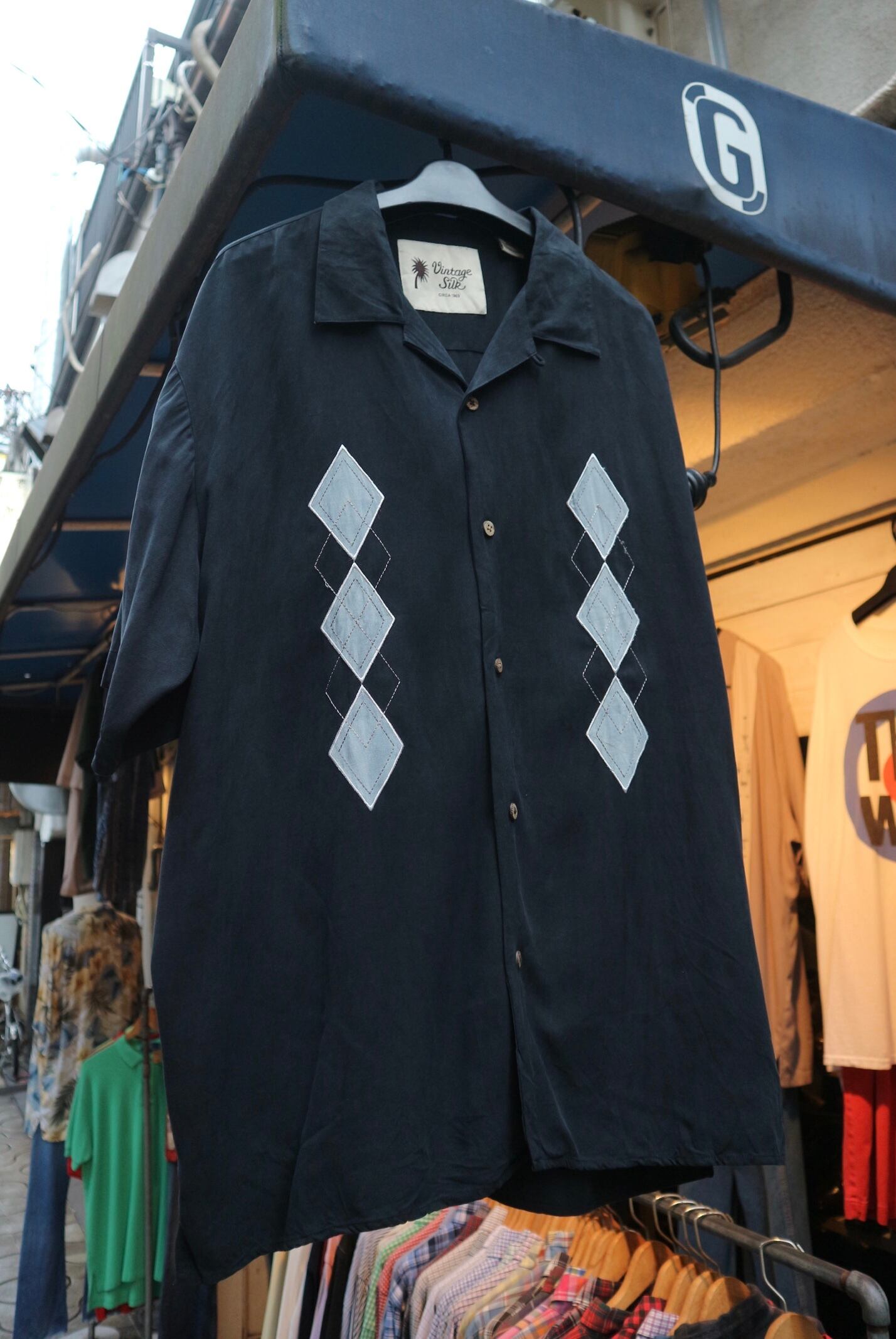 シルク100%涼しい生地の半袖シャツ。開襟の形も綺麗でゆったり羽織れるサイズ感です。